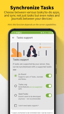 Extinzând funcționalitatea dincolo de agendă, DAVx⁵ îți permite să accesezi și să gestionezi fișierele WebDAV la distanță, ca și cum ar fi stocate direct pe dispozitivul tău. Această facilitate deschide noi orizonturi pentru productivitate și colaborare, transformând stocarea remotă într-o experiență fluidă și intuitivă. Compatibil cu o gamă impresionantă de servere și servicii CalDAV/CardDAV – de la Nextcloud și iCloud la Synology – DAVx⁵ se adaptează mediului tău digital existent. Mai mult, pentru utilizatorii jtxBoard, DAVx⁵ facilitează sincronizarea fără efort a notițelor și jurnalelor direct cu propriul tău server, sporind securitatea și autonomia datelor tale.