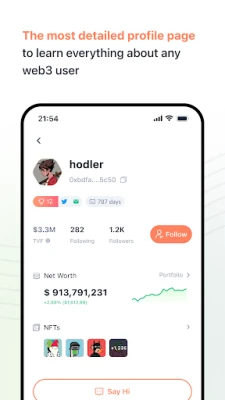 Dar viziunea noastră depășește simpla vizualizare a balanțelor. Creăm punți de comunicare în cadrul rețelei descentralizate. Imaginați-vă că puteți intra în contact direct, într-un mod sigur și privat, cu orice adresă 0x, transformând interacțiunile Web3 în experiențe fluide, fără bariere. Mai mult, fiecare utilizator Web3 devine transparent, printr-o pagină de profil detaliată, care dezvăluie informații esențiale și istoricul activității. Aceasta vă permite să înțelegeți mai bine identitățile digitale din spatele adreselor, facilitând colaborarea și interacțiunile informate.