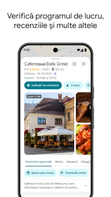 Descoperă orașul ca un adevărat localnic, având încredere în informațiile contribuite și actualizate anual de peste 500 de milioane de utilizatori. Evită aglomerația verificând nivelul de ocupare al unui loc înainte de a ajunge acolo. Utilizează o funcție inovatoare care suprapune indicațiile de mers pe jos peste lumea reală, ghidându-te intuitiv. Filtrează restaurantele după criterii detaliate: specific culinar, program, prețuri, evaluări și multe altele, pentru a găsi exact ce cauți. Ai întrebări despre un anumit loc, de la meniuri la opțiuni de parcare? Primește răspunsuri rapide de la comunitate, transformând fiecare explorare într-o experiență informată și personalizată. Pentru utilizatorii de Wear OS, integrarea cu Tiles și Complications permite căutări și navigări rapide, direct de pe încheietura mâinii.