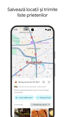 Pregătește-te pentru orice destinație cu instrumente avansate de planificare. Vizualizează în detaliu o zonă înainte de a pleca, de la opțiuni de parcare la intrări specifice, utilizând funcționalitatea de tip Street View. Explorează repere, parcuri și trasee cu o perspectivă imersivă, previzualizând chiar și condițiile meteo pentru a te asigura că ești perfect pregătit. Creează liste personalizate cu locațiile tale favorite și partajează-le cu prietenii sau familia. De asemenea, poți comanda livrări, face rezervări la restaurante sau hoteluri direct din aplicație. Și pentru momentele când semnalul este slab, hărțile offline asigură că nu te vei rătăci niciodată, indiferent de locație.