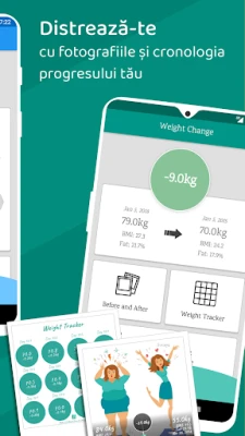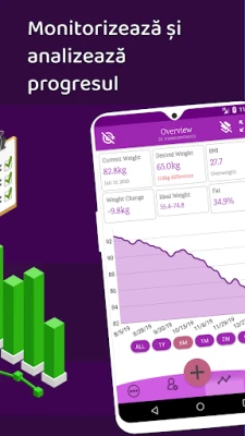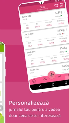 Cu Jurnalul de greutate, transformi datele în motivație vizuală. Poți înregistra fiecare cântărire și observa tendințele pe o diagramă clară, adăugând chiar și fotografii pentru o perspectivă completă. Funcția "Înainte și După" îți permite să vezi transformarea corpului tău, stimulându-ți angajamentul. Personalizează-ți jurnalele de greutate pentru a reflecta exact ceea ce contează pentru tine și primește feedback adaptat progresului tău. Vei putea analiza instantaneu ultimul tău IMC, procentul de grăsime corporală și greutatea ideală, setând noi obiective cu ușurință. Pentru a-ți aminti să te cântărești, setează memento-uri personalizate. Mai mult, ai libertatea de a alege unitățile de măsură preferate (kg, cm; lbs, inches; stones, inches) și de a-ți gestiona datele. Realizează backup-uri sigure pe cardul SD sau transferă-le prin e-mail, iar pentru o analiză aprofundată, generează documente Excel pe care le poți împărtăși cu medicul sau nutriționistul tău. Distribuie succesele tale: creează "carduri de urmărire a greutății" zilnice, săptămânale sau lunare și împărtășește-le cu comunitatea ta online, folosind hashtag-ul #măsoarăgreutatea.