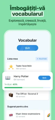 Mai mult decât un simplu instrument de traducere, Reverso Context este un partener didactic complet. Îți construiești un vocabular personalizat, salvând traducerile preferate, iar apoi poți consolida aceste cunoștințe prin activități ludice. Flashcard-uri, teste interactive și jocuri, generate inteligent pe baza istoricului tău, utilizează sistemul de repetiție spațiată (SRS) pentru o memorare eficientă și de durată. Cu acces la 14 limbi diverse – de la engleză și franceză, la japoneză și chineză – și funcționalități precum recunoașterea vocală cu pronunție nativă, conjugarea verbelor, sinonimele și istoricul căutărilor accesibil offline, Reverso Context îți oferă tot ce ai nevoie pentru a explora și a stăpâni noi orizonturi lingvistice. Poți chiar distribui cu ușurință descoperirile tale cu prietenii.